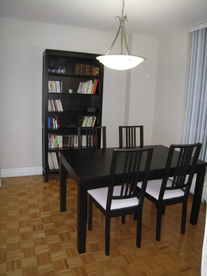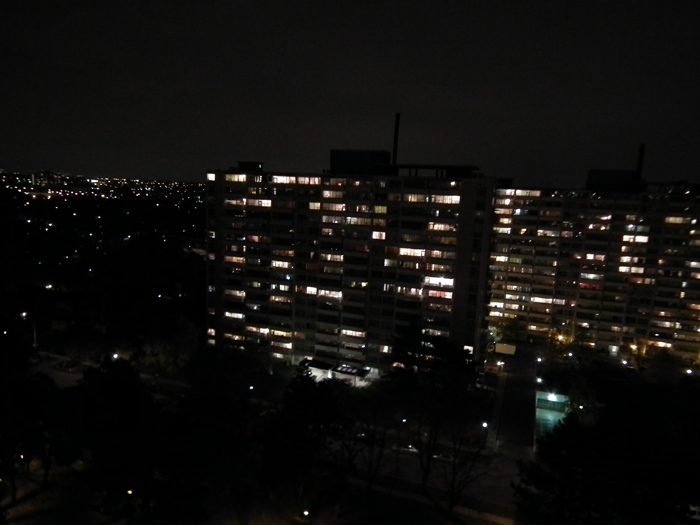 Sur les photos vous pouvez voir l’appartement en entier ainsi que la vue (de nuit) depuis notre balcon. On voit d’ailleurs la CN Tower qui tourne sur elle-même. (Notre Tour Eiffel à nous !)