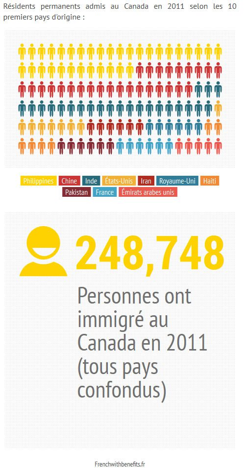 J’avais envie de vous parler de l’immigration au Canada grâce à trois infographies que j’ai réalisées. Les informations proviennent du site officiel du CIC. Vous pouvez aussi retrouver un bon récap sur cette page Wikipedia.