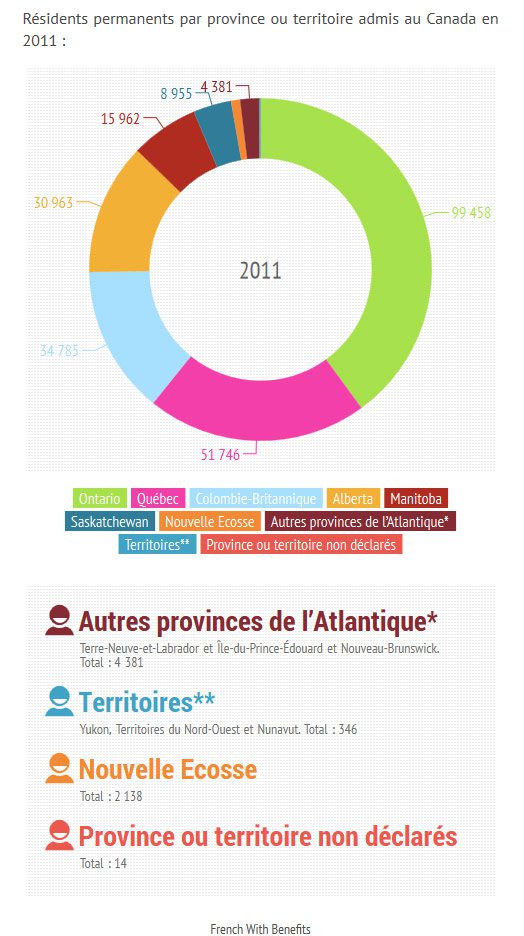 @Jessica: Une raison à cela : Le français. Trës peu de gens au Canada parlent français. Logique qu’ils aillent donc dans des provinces anglophones même si beaucoup ne parlent pas anglais non plus mais bon ! On dit qu’il est plus facile de s’adapter dans une province anglophone… Je ne sais pas si c’est vrai.